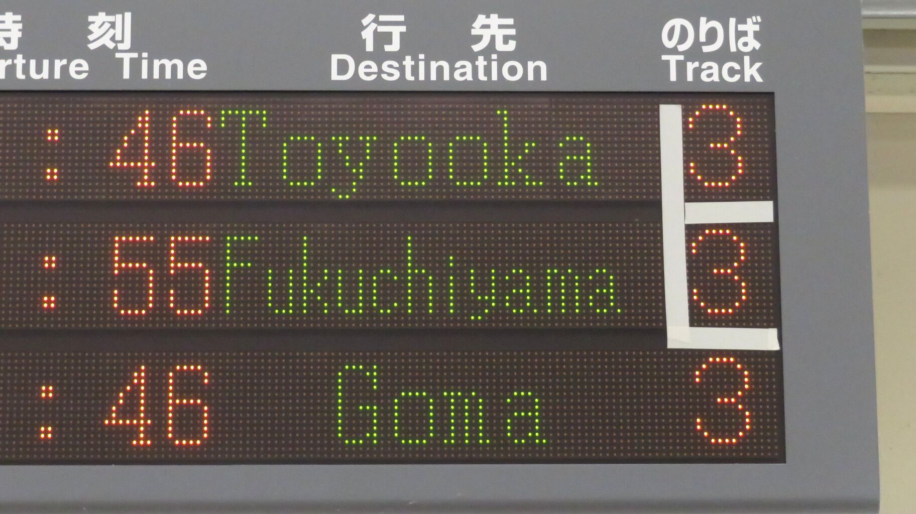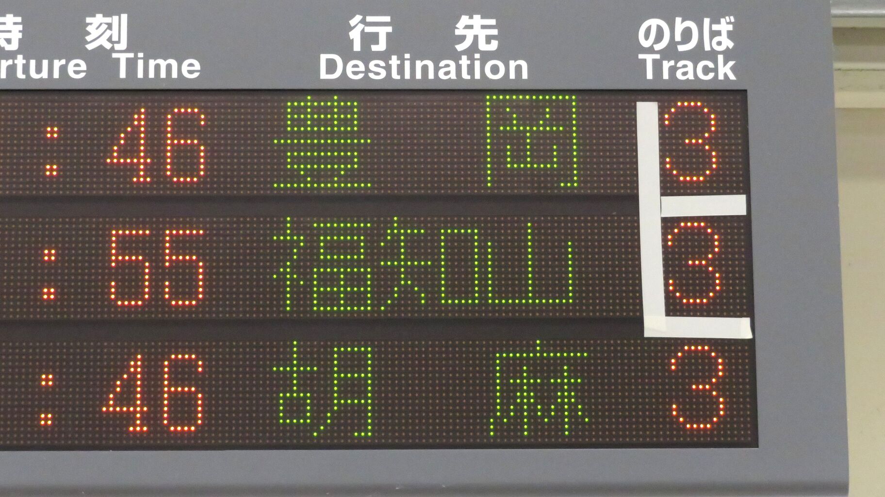 続いて、改札口に設置されている発車標を撮影。