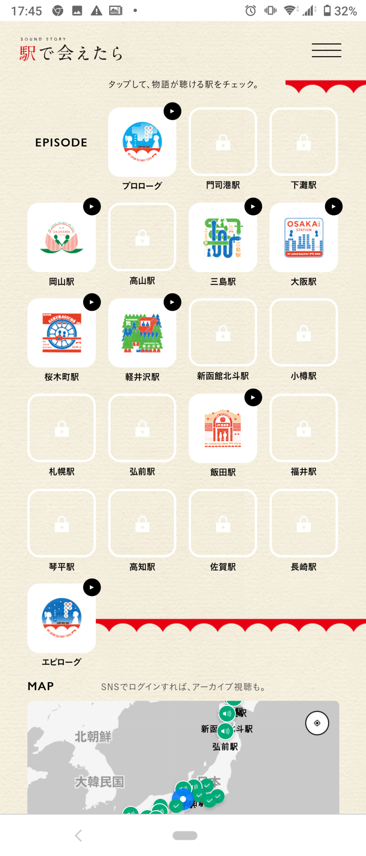 その駅のデジタルスタンプを押していれば 自動的に音声ストーリーを聴けるようになるわけではない のでご注意を。