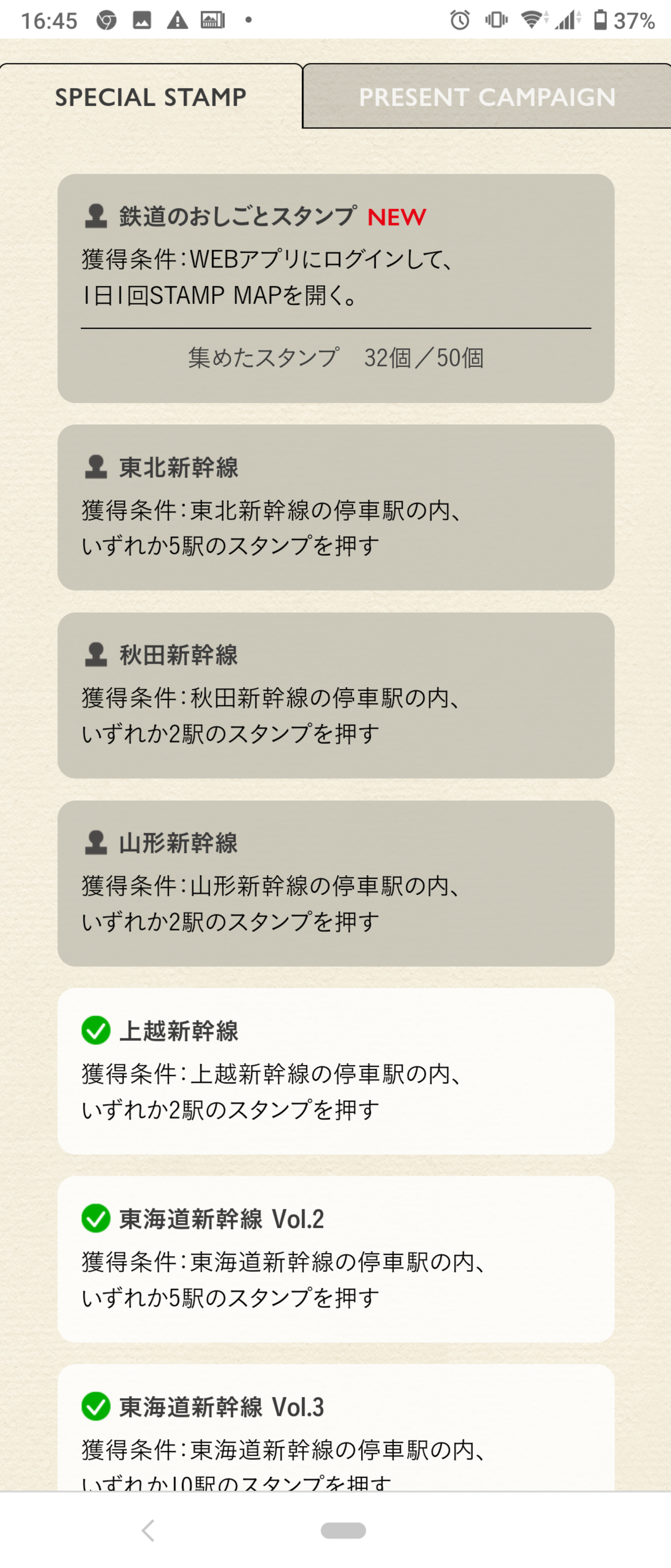 「東海道新幹線の停車駅のうち、いずれか5駅のスタンプを押す」 など特定の条件をクリアすることで 押せるようになります。