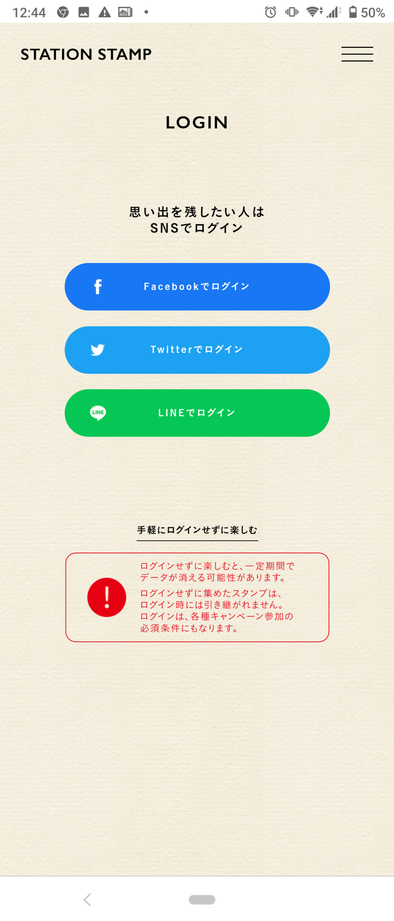 なお、TwitterなどのSNSから 「TRAIN TRIP」 を開いた場合、集めたスタンプが途中で消えてしまう可能性があるので、必ず標準ブラウザで開くようにしてください。