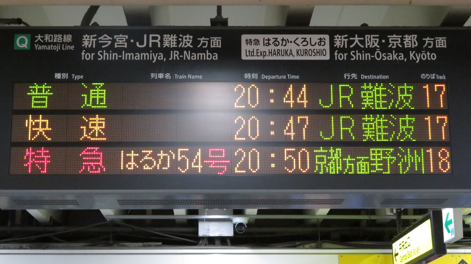 阪和線ホームに設置されている液晶ディスプレイの発車標です。