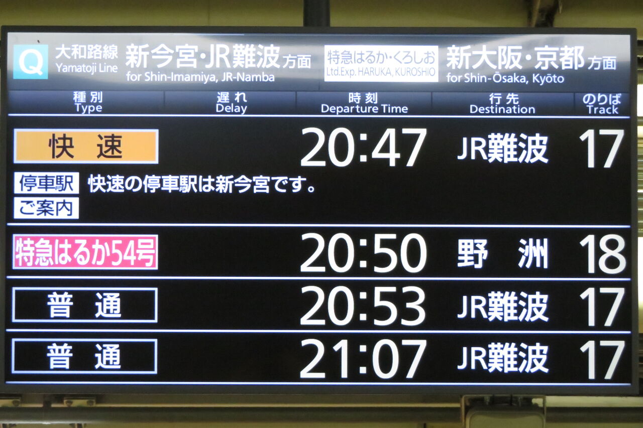 しかし 今月(2021年9月)、改めて天王寺駅を訪れると、そんな野洲行きの表示に意外な変化がありました。
