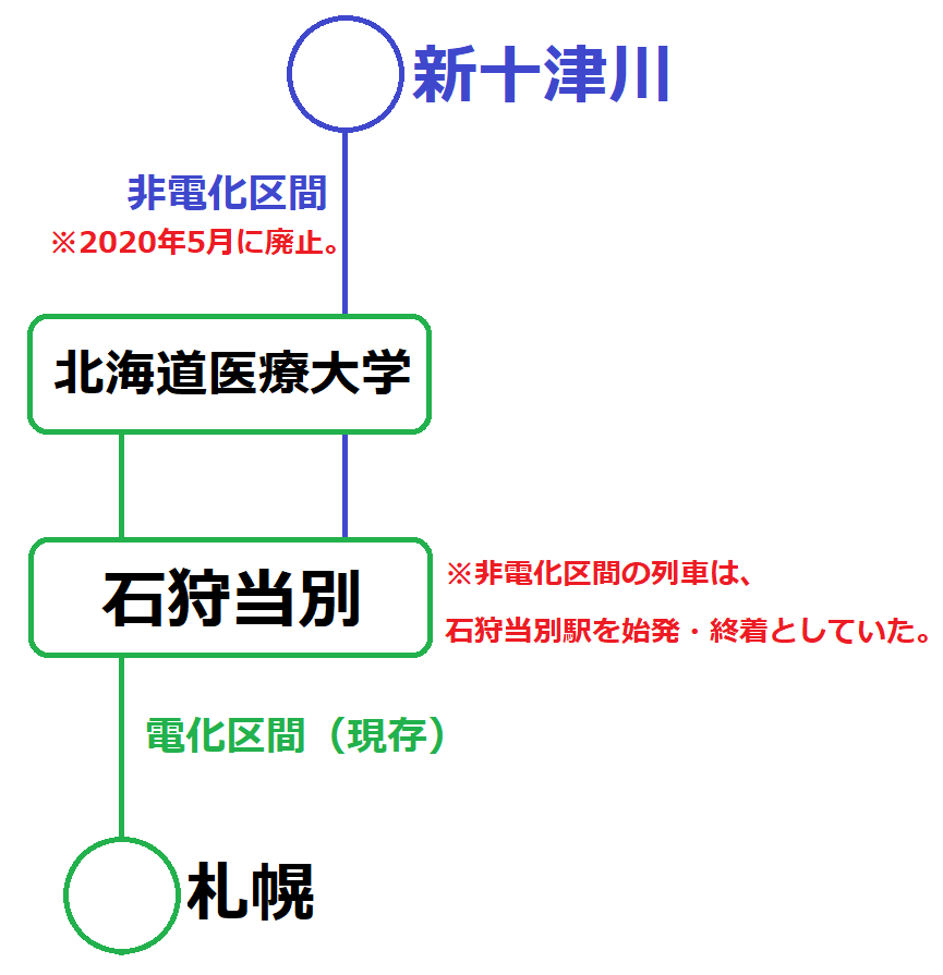 かつては、非電化区間(北海道医療大学~新十津川駅間。 2020年5月に廃止)の列車が 全てこの駅まで乗り入れており、運行系統上の境界駅でもあったんですよね。