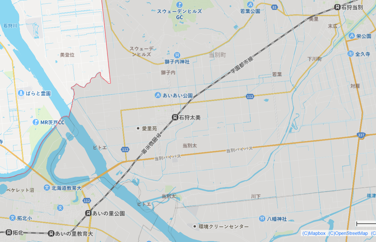 両駅は駅名に 「石狩」 を冠していますが、石狩市ではなく当別町にあります。