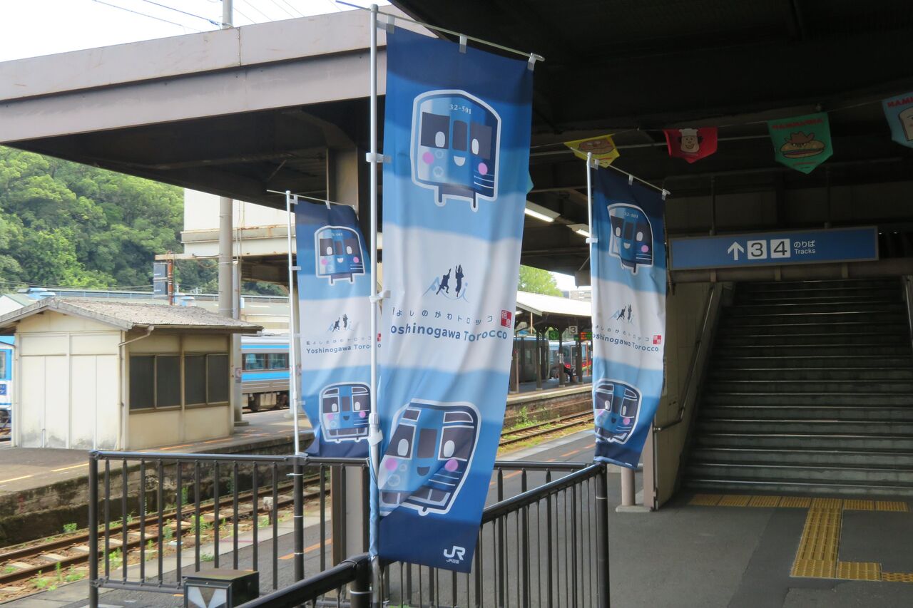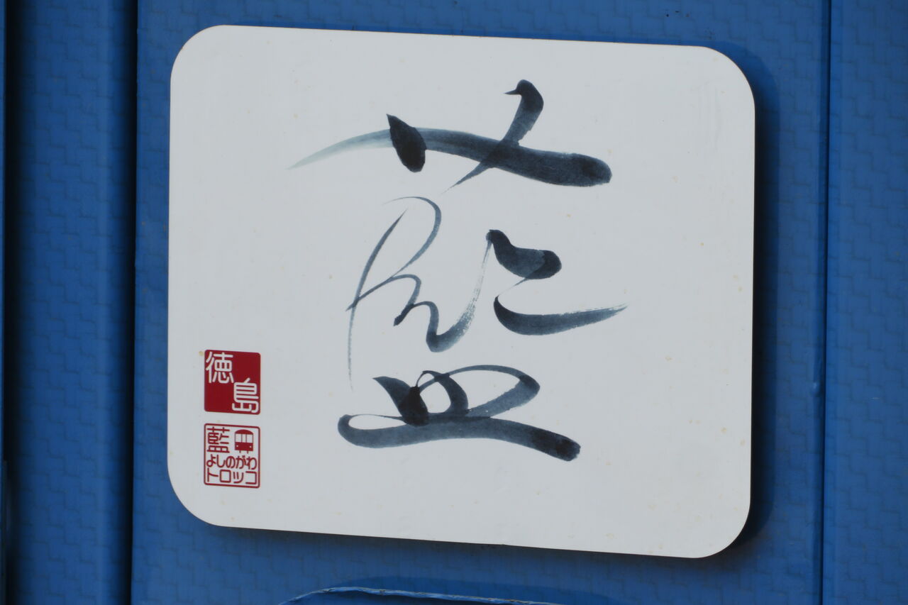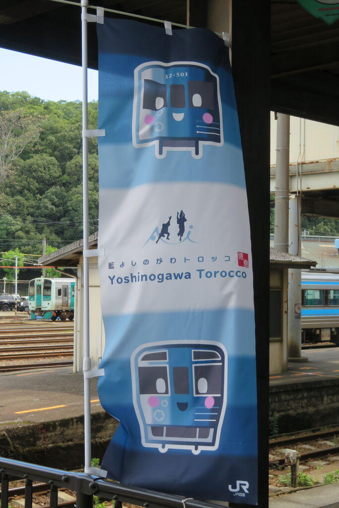 車止めの後ろには、藍よしのがわトロッコの幟が立てられていました。