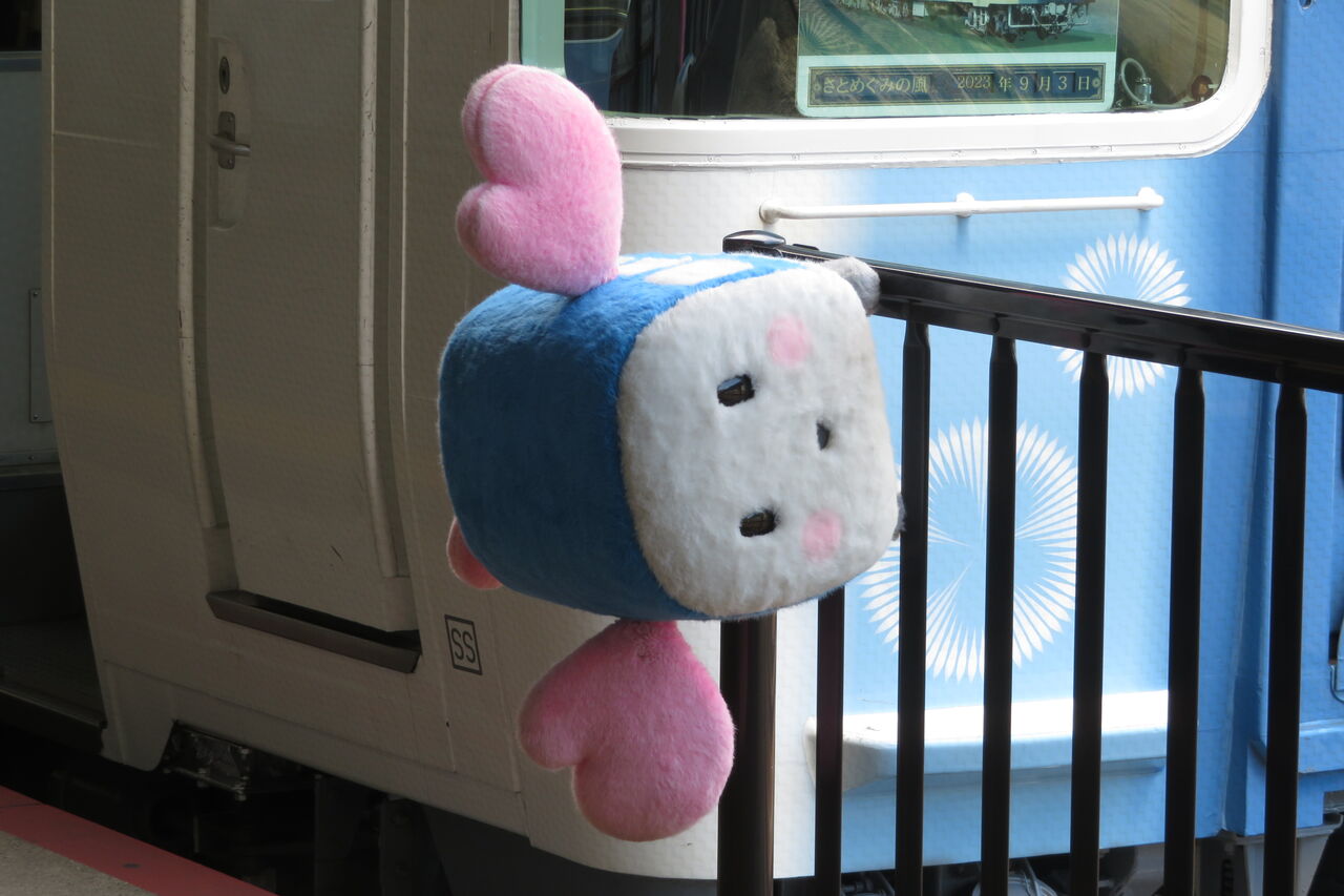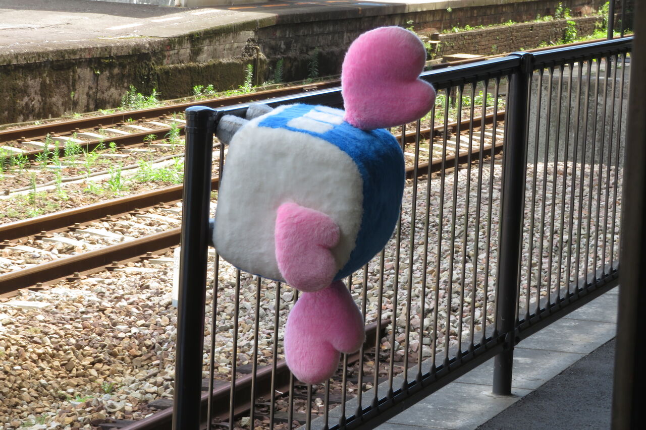 車両近くの柵に、JR四国のキャラクター 「れっちゃくん」 が取り付けられていました!