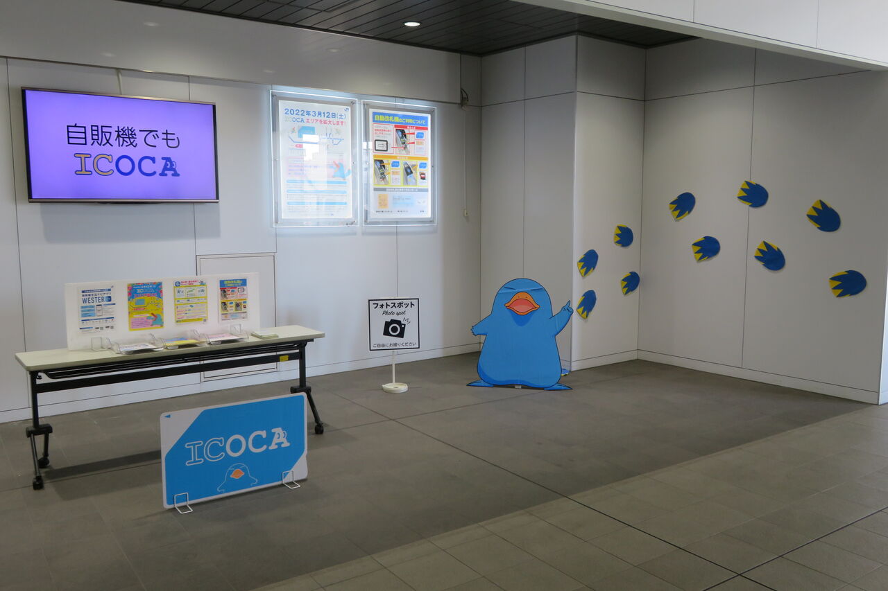 新幹線改札口を出て、在来線改札口へ向かって自由通路を歩いていると、ICOCAの特設コーナーがありました。