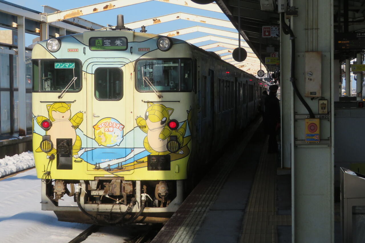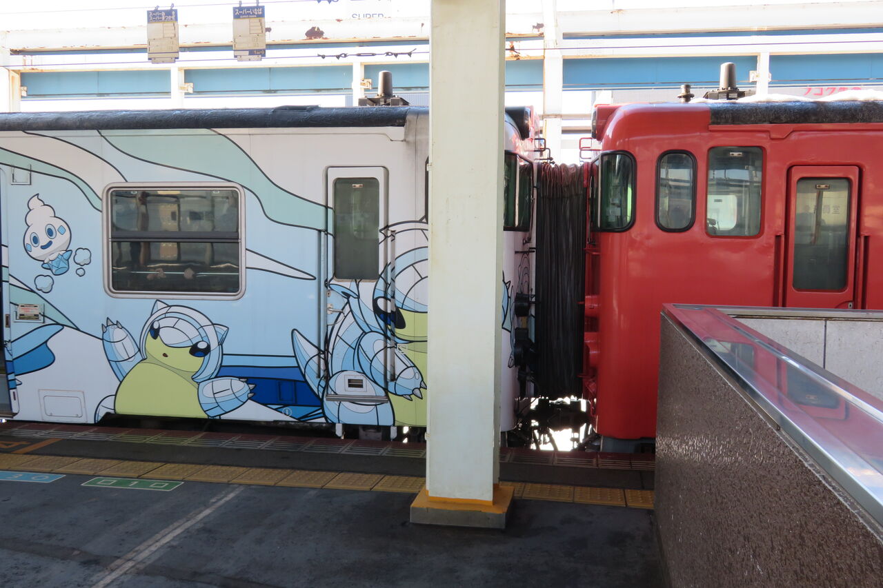 後ろ側の車両は、ポケモンに登場する 「サンド」 と 「アローラサンド」 のラッピング列車でした。