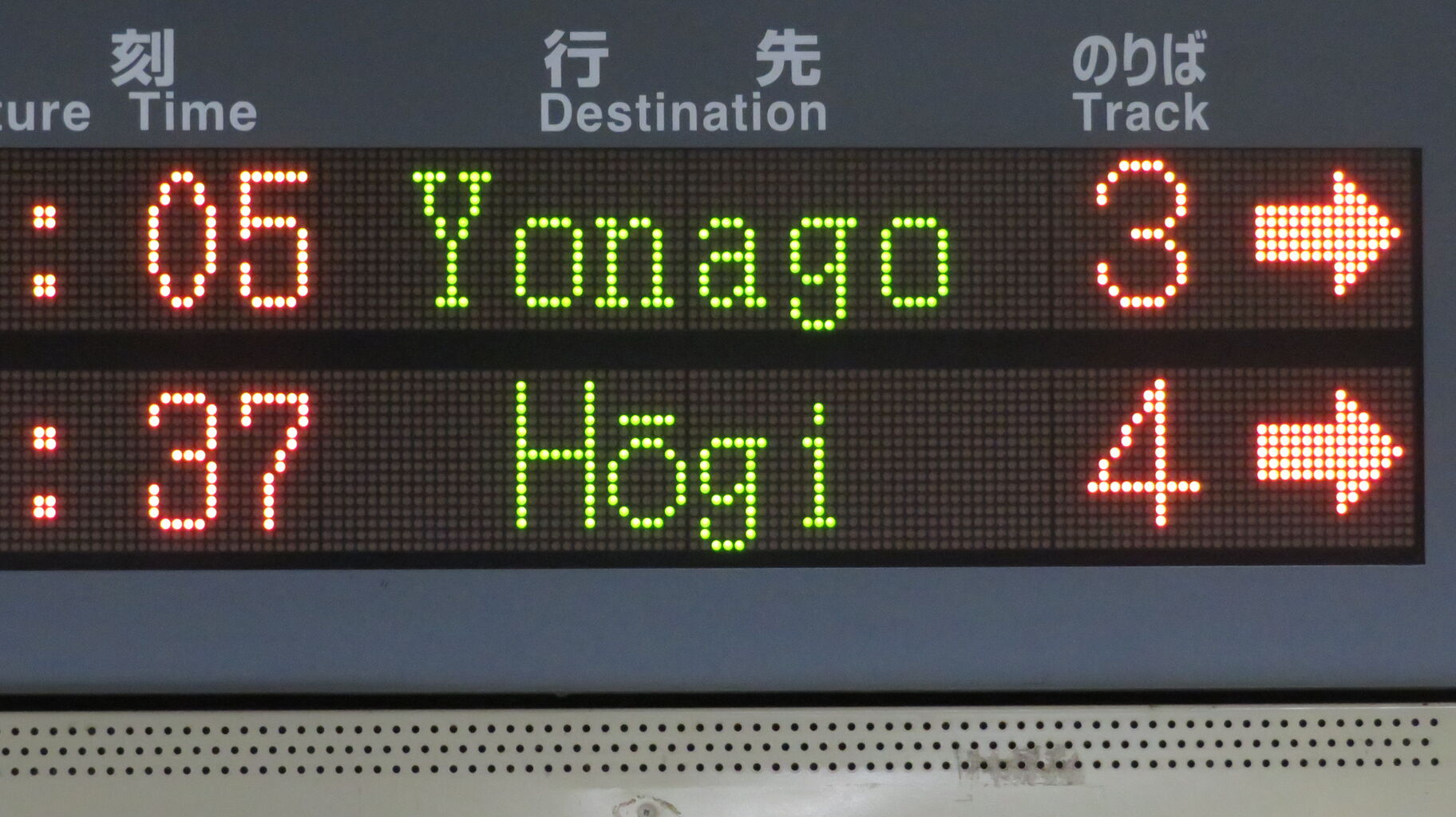 発車標が、1年に1度しか運転されない行き先に しっかり対応しています。