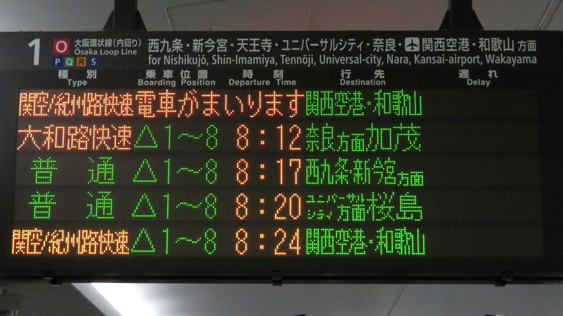 後日別記事で紹介しますが、大阪駅の3~11番のりばでは 英語の行き先表示が詳細になりました。