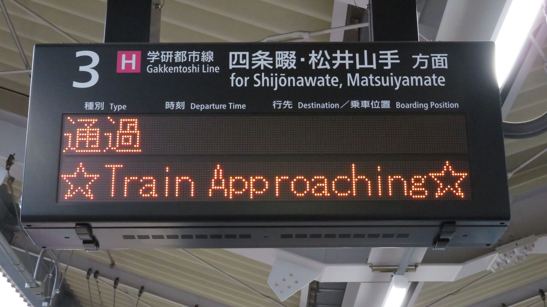 接近表示が更新された路線では、日本語の 電車がまいります 表示が見られなくなってしまいました。
