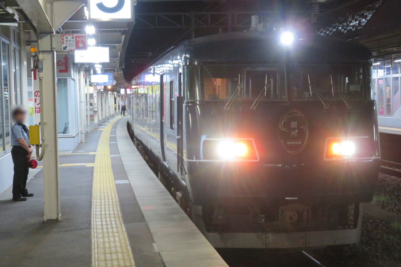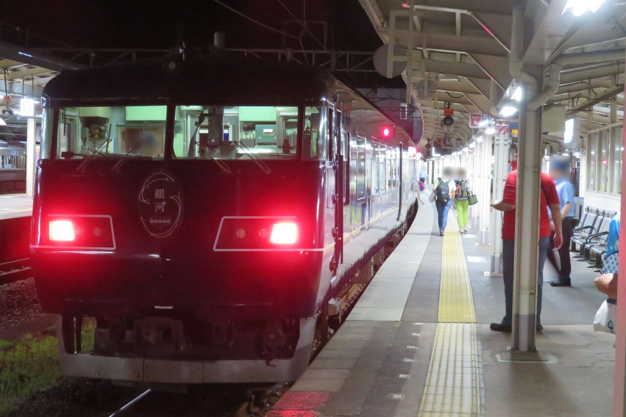 隣のホーム 6番のりばから、5番のりばに停車中の銀河を撮影。