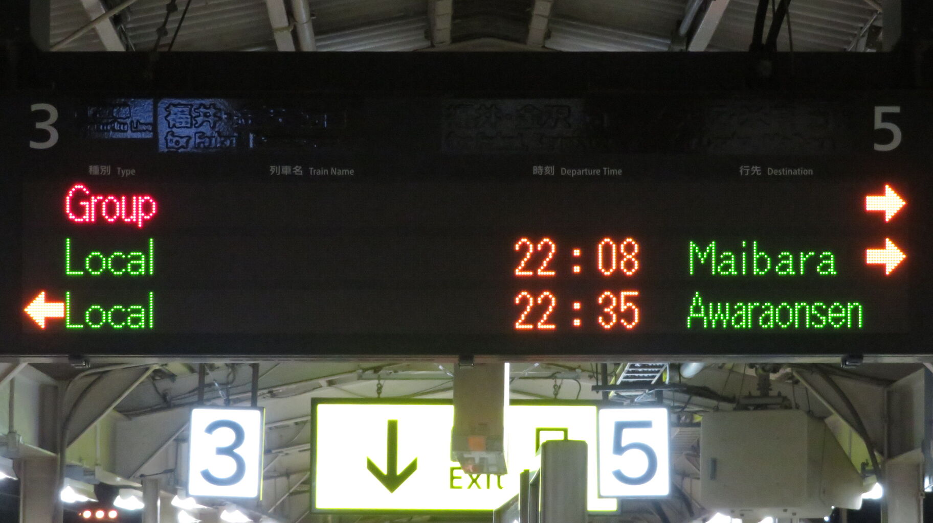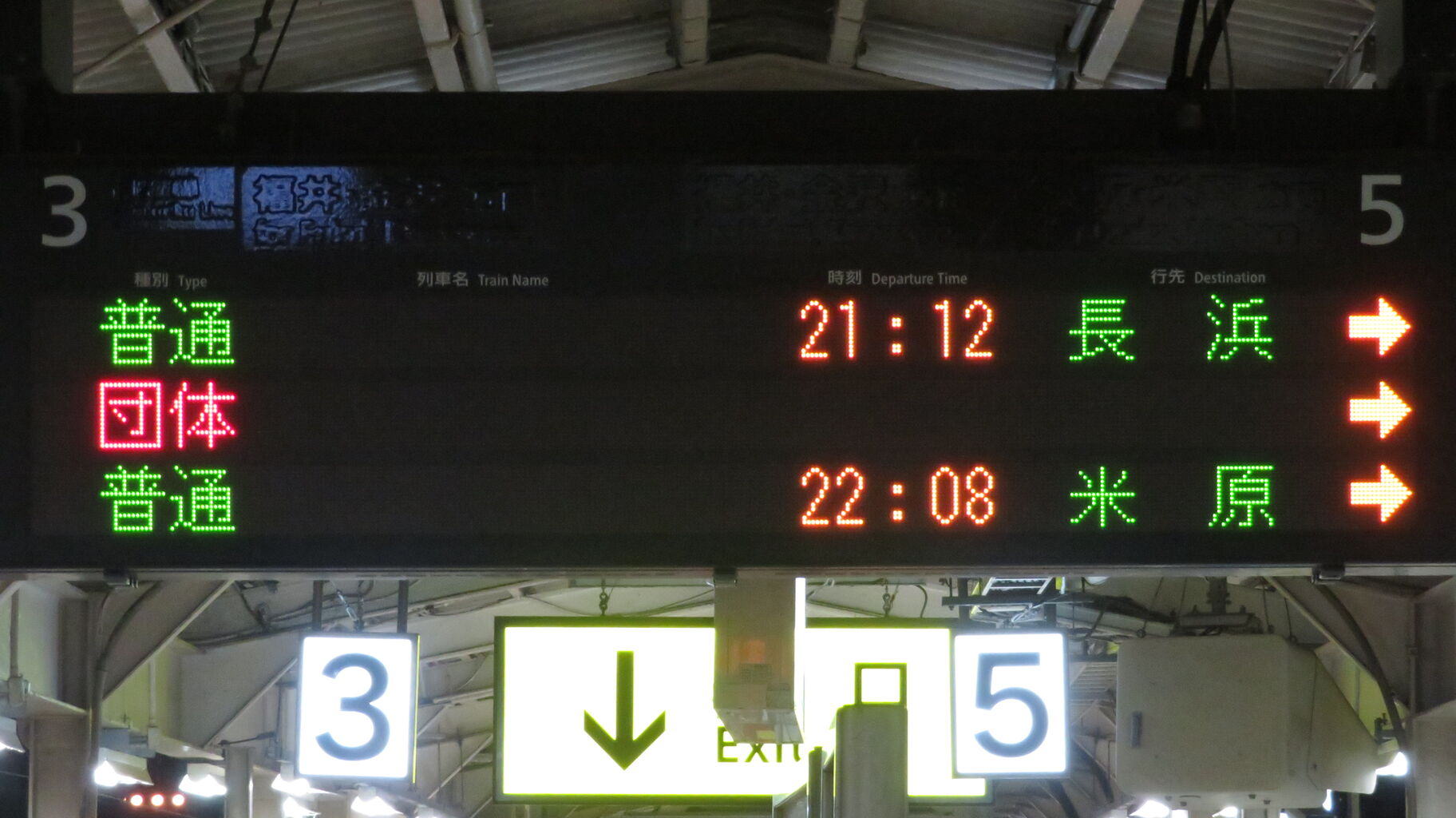 改札内跨線橋に設置されているLCD発車標にも、銀河の表示は出ていません。