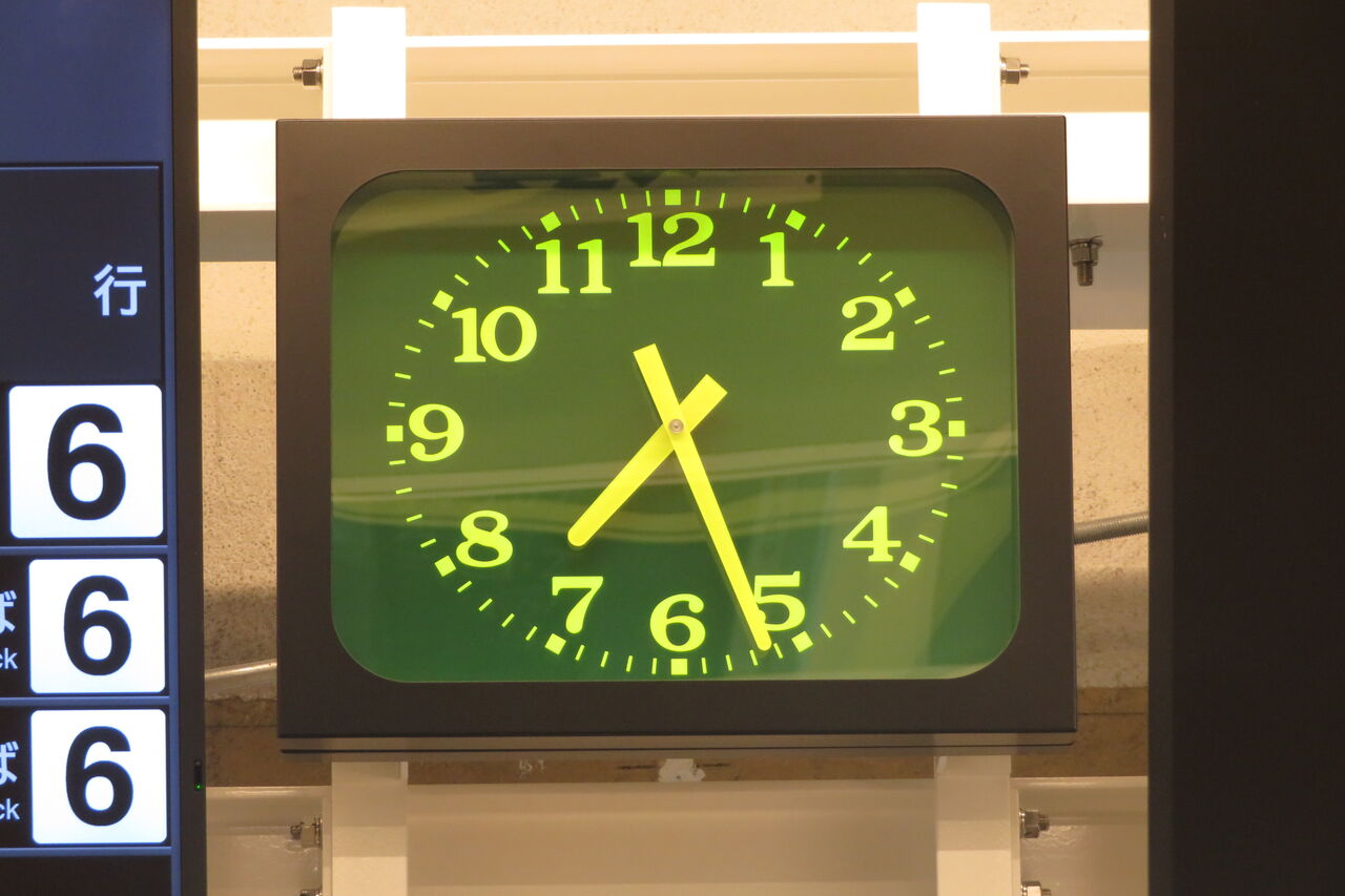 大阪・米原方面のLCD発車標と 何も表示されていないLCDの間に、時計が設置されました。