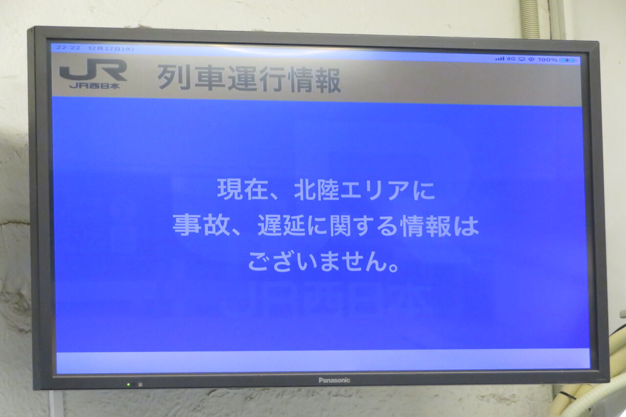 右端のLCDには、JR西日本の列車運行情報が表示されます。