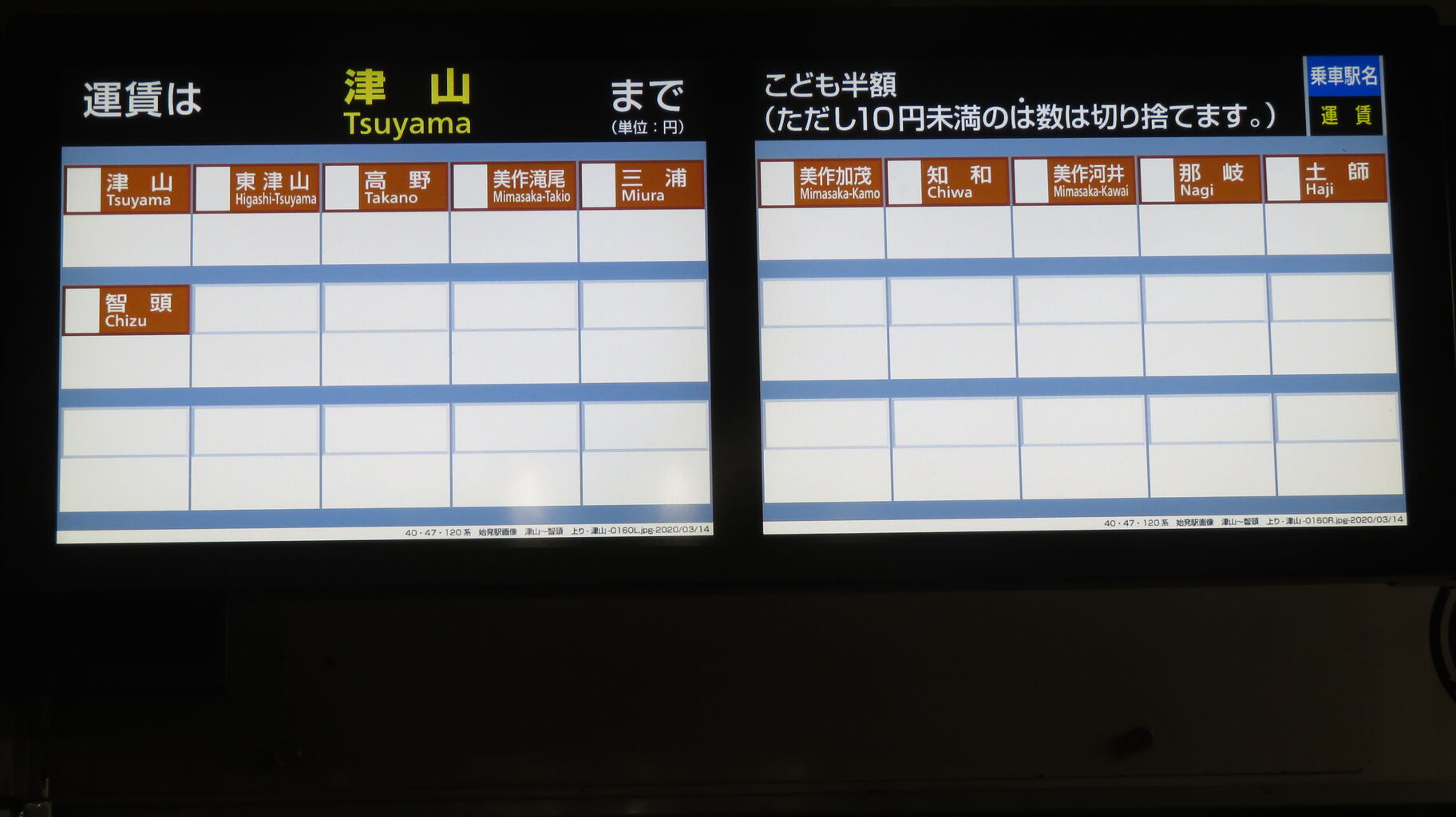 美作加茂行きは 5時33分発と20時53分発(最終列車)の2本のみです。