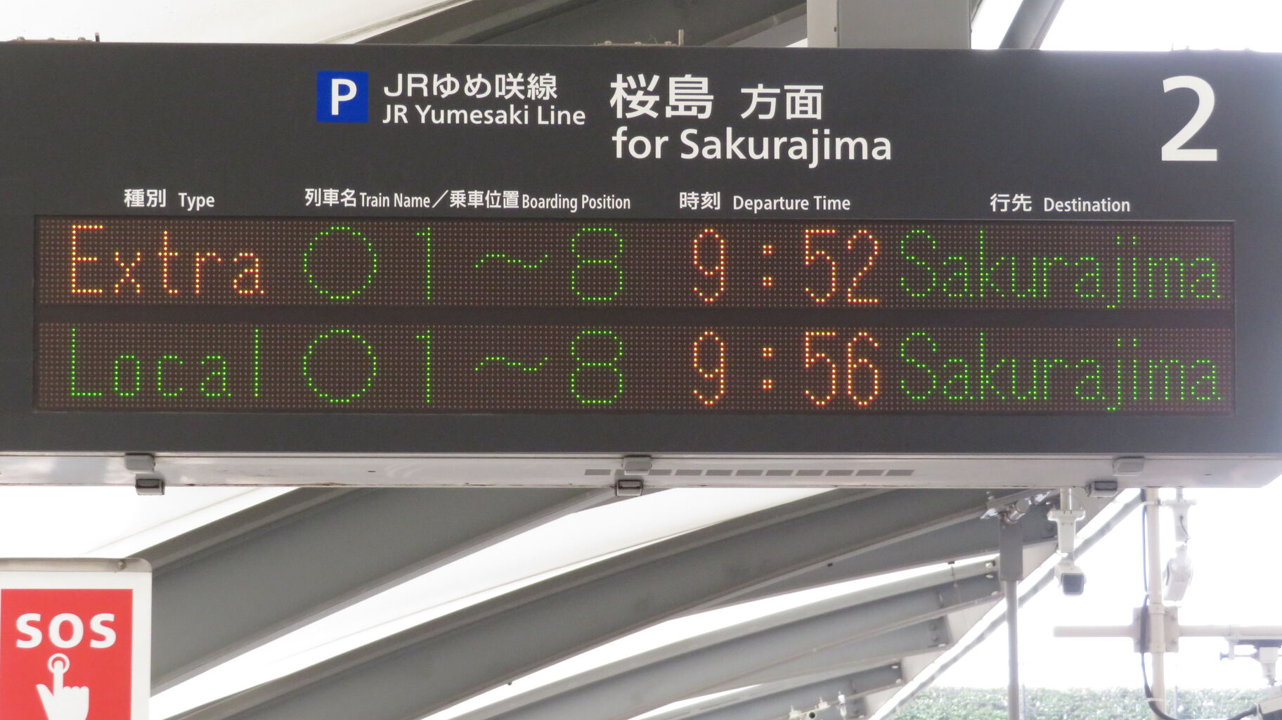 続いて、2番のりばに設置されている発車標を撮影。