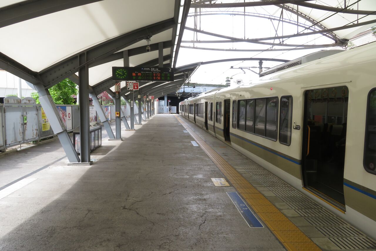 臨時列車の場合、新大阪駅や大阪駅では 「列車がまいります」 でしたが、この駅では 「電車がまいります」 となっています。
