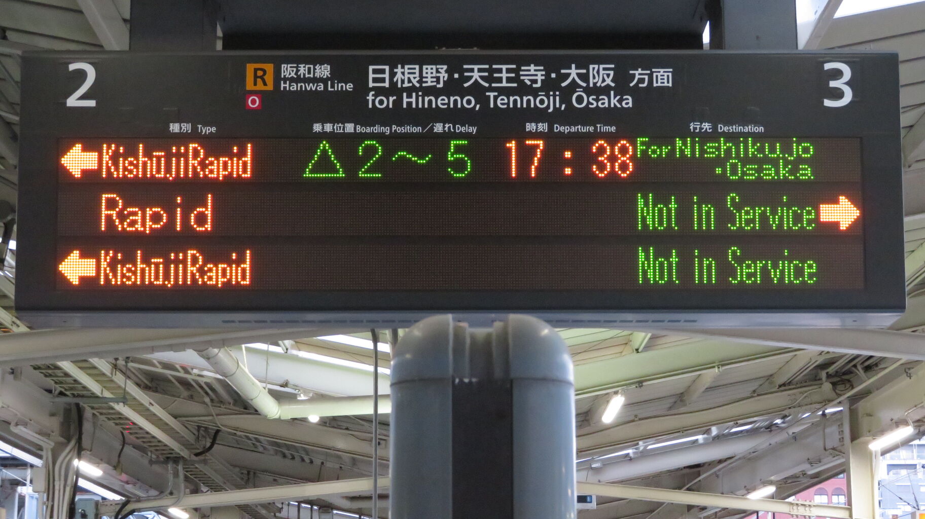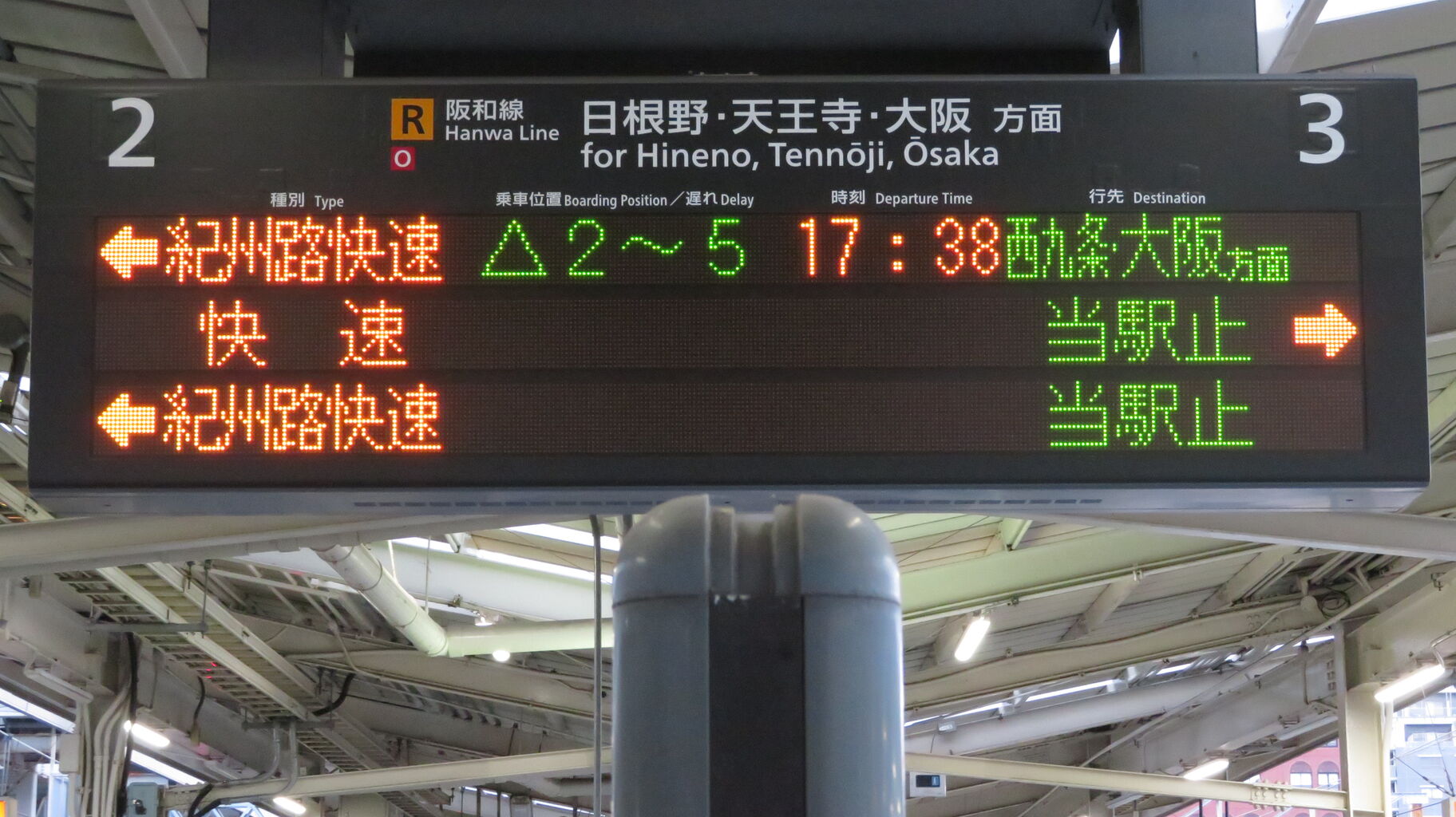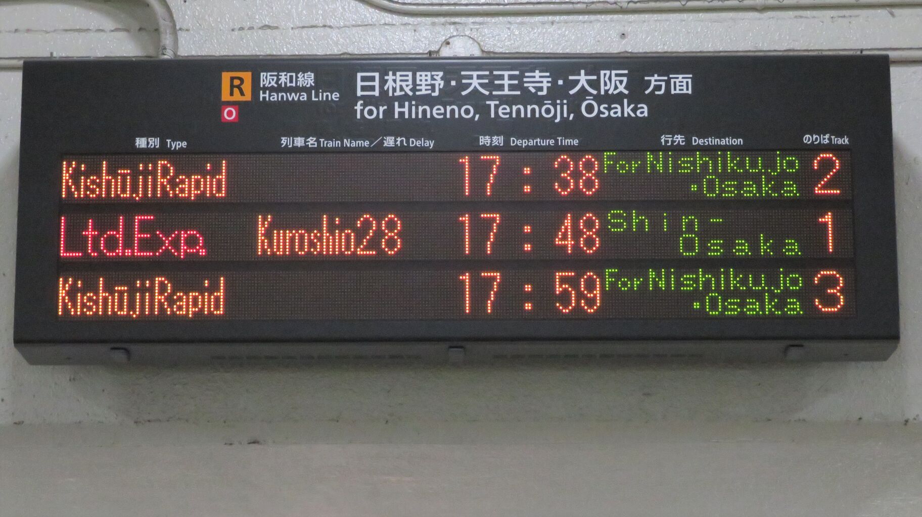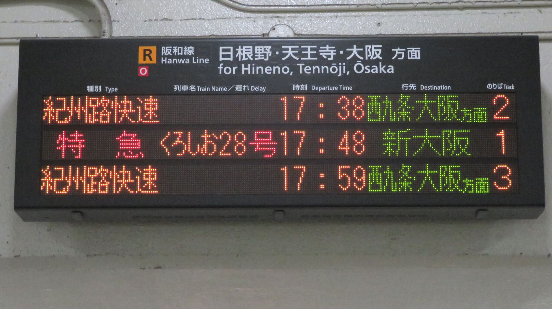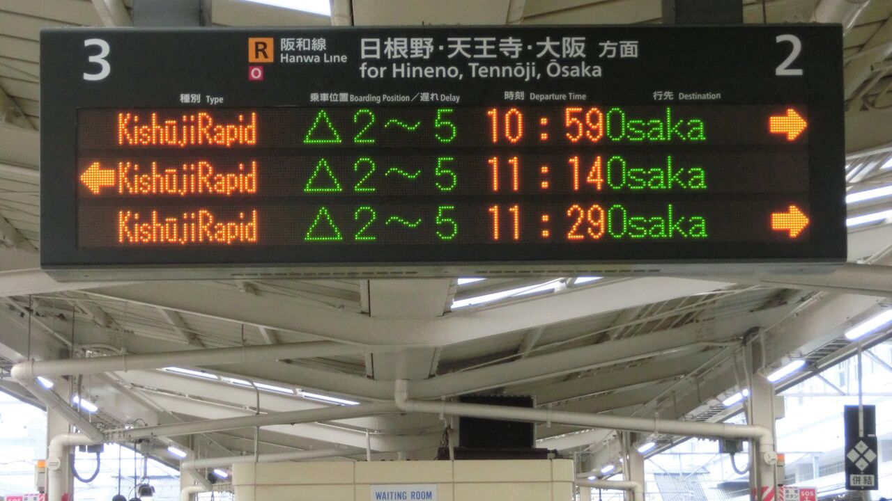 2020年9月21日に和歌山駅を訪れると、大阪方面行きが 「西九条・大阪方面行き」 と案内されるようになっていたので、このブログで紹介したいと思います。