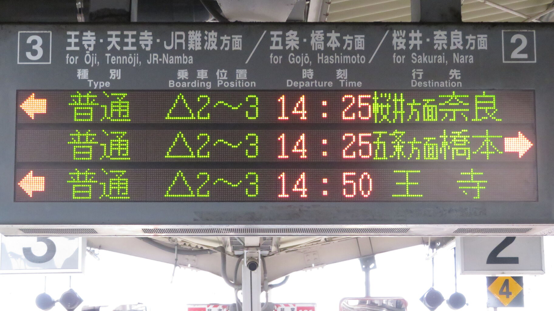 夕方、改めて王寺駅を訪れ、4・5番のりばの発車標を撮影。