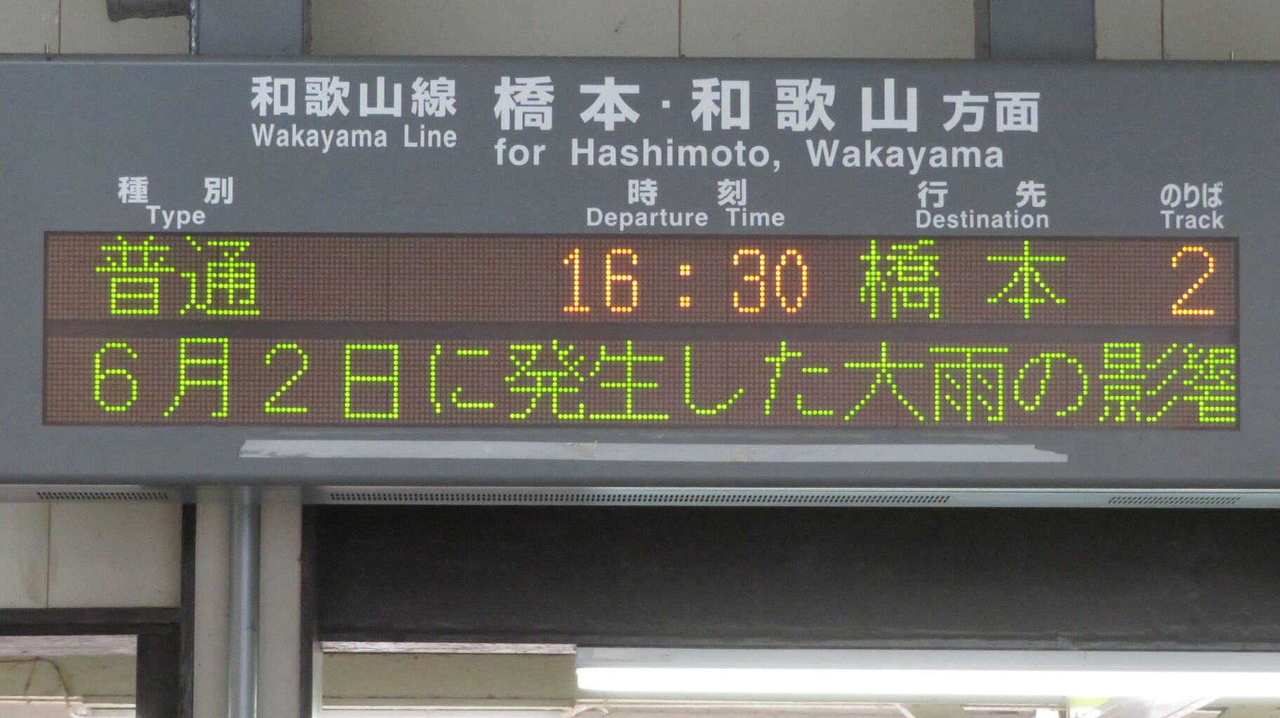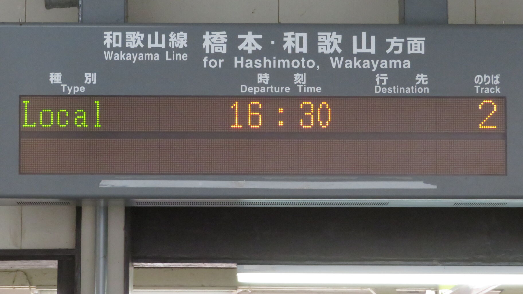 夕方、改めて志都美駅を訪れ、橋本行きの表示を撮影しました。