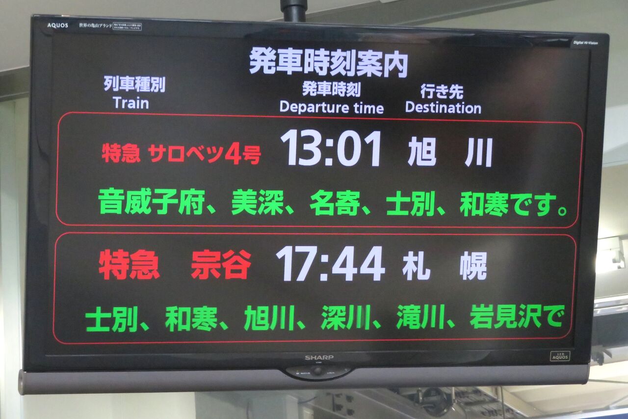 以上、稚内駅の改札口にあるLCD発車標を紹介しました。